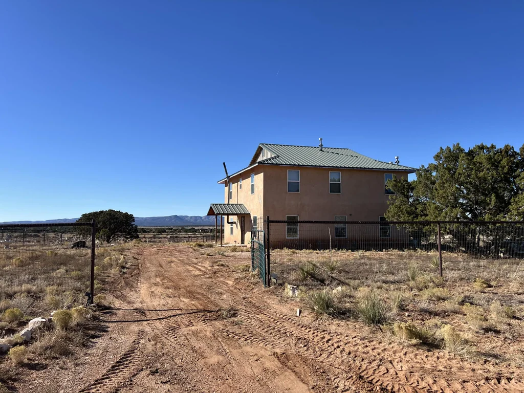 Don't miss out on this Hobby Ranch. Large 2 story 3-bedroom 3-bath home boast 2592 square ft. of heated living area for the family. Home sits on 40 acres of beautiful New Mexico landscape surrounded by majestic views of the Chupadero, Manzano and Pino's Mountains. Three large bedrooms upstairs and an option for an Office, workout area or fourth bedroom downstairs. Large Country Kitchen with an oversized utility room for washer, dryer, freezer and plenty of food storage. Living room has potbelly wood stove to enjoy winter evenings. Outside of the home there is a large barn for storage of hay or vehicles with attached covered stables for your animals. Large arena and round pen for horse training in mind. Most of property is fenced and cross fenced for stock rotation.