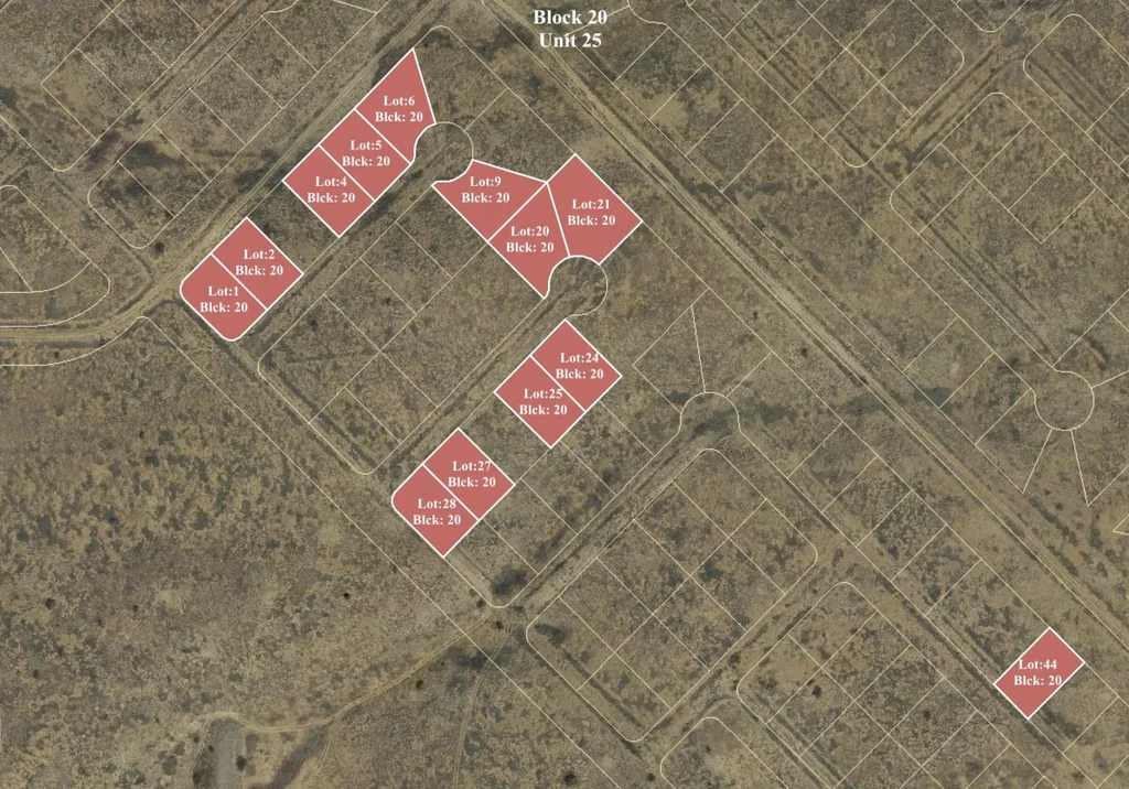 Looking for an opportunity to own some land?? This packaged deal includes 13 lots in Block 20 of Unit 24 of the Rio Del Oro Subdivision. Parcels may vary in size but are about .25 acres each for a total of about 3.25 acres. If you need more, there are other blocks and units available for sale.
