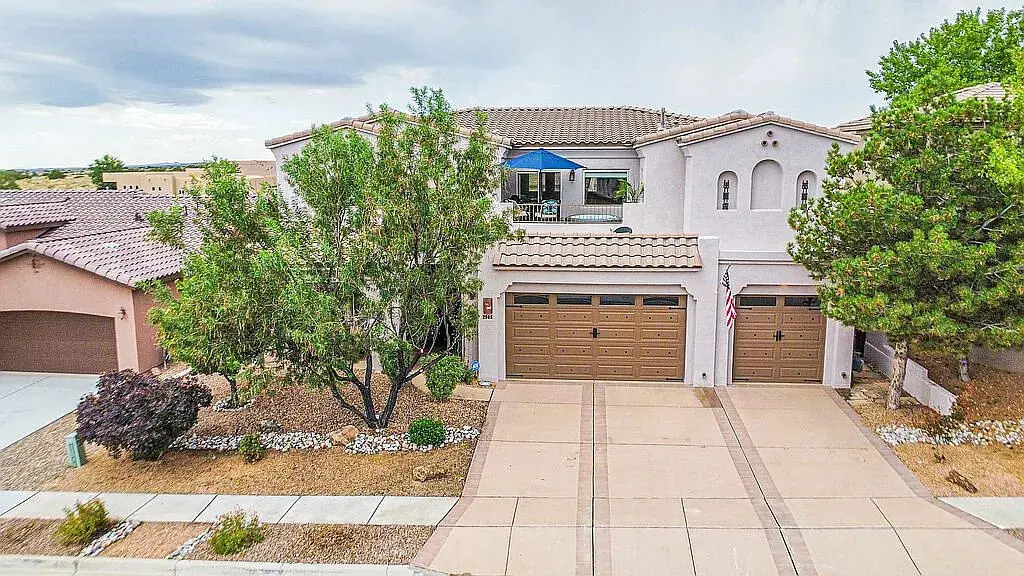 Multi-gen, custom home in Mariposa with views! Assumable 5.875% fixed until 2030. This gorgeous, quality Mediterranean home is the perfect combination of high-end elegance and low maintenance, on an arroyo backing lot with gorgeous Sandia mountain, Albuquerque city lights and arroyo views! Mariposa is a highly sought after community in one of New Mexico's top school districts with an incredibly low crime rate, 25 minutes to ABQ and 45 minutes to Santa Fe. Included in the HOA is a gym, indoor and outdoor pools, and gorgeous walking/biking trails!
