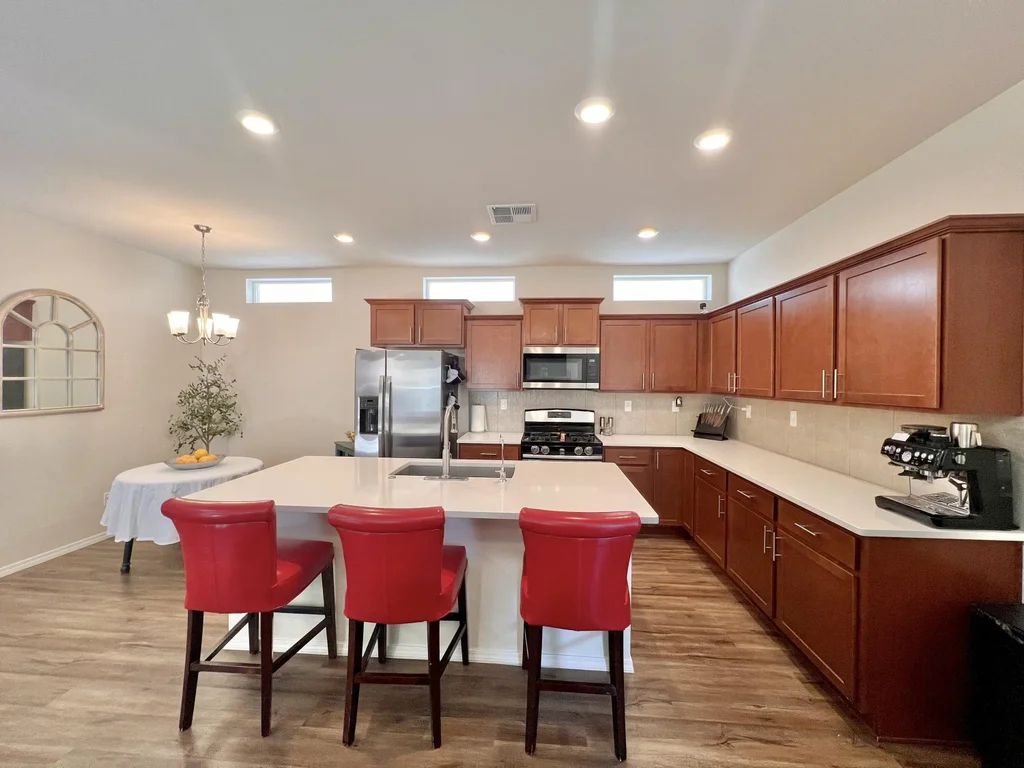Welcome to this immaculate, detached two-story home in a quiet Los Lunas cul-de-sac. This move-in-ready residence, built in 2020, features a stylish, open floor plan with luxury vinyl tile flooring and a cozy built-in fireplace. The gourmet kitchen is a chef's delight, offering quartz countertops, custom cabinets, and stainless steel appliances. Enjoy the private, gated entry and landscaped courtyard, just minutes from restaurants, shopping, and freeways. This home may also qualify for a USDA 0% down payment loan. Schedule your showing today!