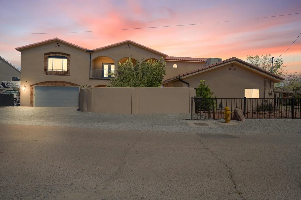Discover an extraordinary blend of historic charm and contemporary elegance added in 2018 in the heart of Downtown Albuquerque. This one-of-a-kind property is a must-see. Step into a private, gated courtyard featuring lush grass and a covered patio--perfect for relaxing or entertaining. Inside, you're welcomed by a stunning open-concept Great Room with a cozy fireplace, seamlessly flowing into a beautifully updated custom chef's kitchen. The kitchen is outfitted with granite countertops, a large center island, and stylish cabinetry, creating the perfect space for gatherings and culinary creativity. Step down into the formal dining room and discover a second living area along with two lower-level bedrooms--all part of the original adobe home built in the early 1900s.