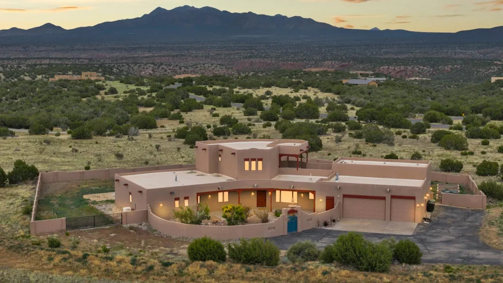 Welcome to 5 La Aguapa, Sandia Park, NM Experience luxury rural living in San Pedro Creek Estates, one of the most desirable communities in Sandia Park. This beautiful custom home offers over 4,000 square feet of living space on 10.57 acres with breathtaking views of five mountain ranges. Featuring 4 bedrooms, including two primary suites, and 4 bathrooms, this home is designed for comfort and style. The great room showcases soaring ceilings, a gas log fireplace, and panoramic mountain views. The gourmet kitchen includes granite countertops, a built-in gas stove, ample cabinetry, a large pantry, and access to a spacious workshop and three-car garage--perfect for hobbies, projects, or extra storage. Additional highlights include radiant heat, travertine tile flooring