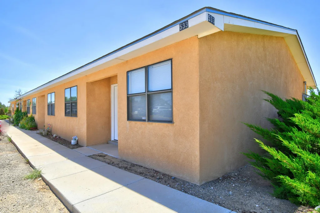 Don't miss this rare chance to own a fully rented 4-plex in the heart of Rio Rancho! Situated on a spacious 0.34-acre lot, this well-maintained property features four identical 2-bedroom, 1-bath units, each offering approximately 900 sq ft of comfortable living space.Each unit is thoughtfully designed with an open-concept kitchen, breakfast bar, and electric stove, creating a welcoming atmosphere for tenants. Washer and dryer hookups in every unit add convenience, while individual storage units provide added value. Ample on-site parking ensures tenants and guests have easy access at all times.With strong rental demand in the area and well-appointed features throughout, this property is an ideal addition to any investor's portfolio.