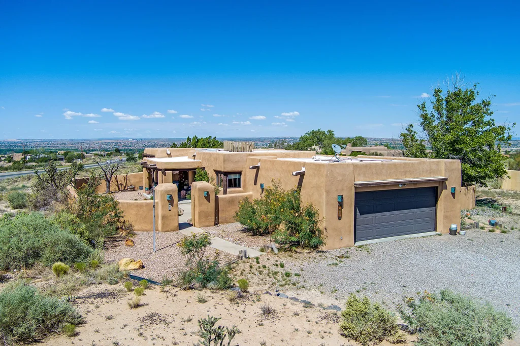 Amazing opportunity to own a custom adobe home in Placitas. Beautiful views of the Sandias and sunsets. Home was custom built for the builders parents. Covered portal entry. Kiva fireplaces, beams, lovely tile floors and SW accents enhance the home. TPO Roof, septic and other features updated in 2019. Open and bright floor plan with separated primary suite. The bedrooms face north to back yard views and privacy. Convenient commute to Rio Rancho, Albuquerque and Santa Fe.
