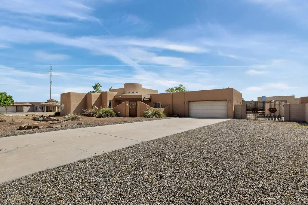 Welcome to this beautiful South Valley retreat on large lot, NO HOA! This home offers the perfect blend of comfort and functional living. Featuring 3 spacious bedrooms and 2 full baths, 2 car garage with side yard access for all your toys. The home boasts an open-concept floor plan with plenty of natural light throughout with southwest style. Vigas in living area flows seamlessly into a modern kitchen equipped with updated appliances, ample cabinet space, and a breakfast bar, perfect for casual dining. The primary suite offers a private retreat with a generous closet and en-suite bath. Step outside to a low-maintenance backyard, ideal for relaxing or entertaining. Conveniently located near schools, shopping, freeways, close to Kirtland AirForce Base, major hospitals and great dining.