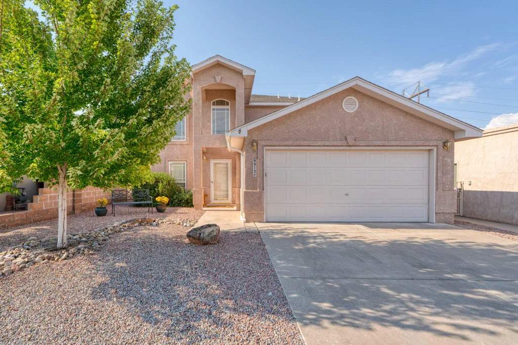 Stunning two-story home tucked in the desirable Quintessence neighborhood, close to parks, trails, and top-rated schools. Convenient main level private primary suite, AC, & fresh flooring throughout - including beautiful kitchen tile, updated carpet, and stylish wood-look tile. The kitchen features granite countertops & stainless steel appliances, while a cozy gas log fireplace and cathedral ceilings create a warm and inviting living space. A whole-home humidifier has also been added to the HVAC system for extra comfort. Upstairs, enjoy breathtaking views of the Sandias at sunset or the Tanoan golf course from your private balcony. Two loft spaces provide flexibility for play or work- one could even be converted to a 4th bedroom. Beautifully landscaped backyard, covered patio and hot tub!