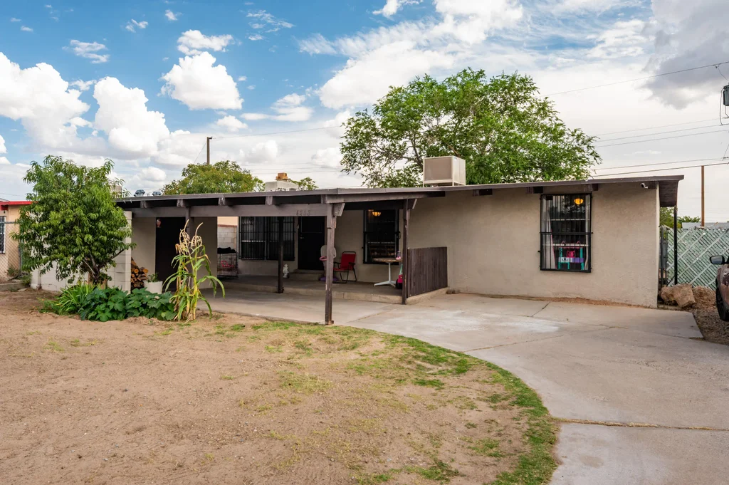 Welcome to this move-in ready, single-story 3-bedroom home in the heart of Albuquerque's South Valley! 6208 Gonzales presents you with beautiful tongue-and-groove wood ceilings, exposed beams that enhance the warmth and character of the space. Let a toasty wood burning fireplace be your family room's focal point this fall! Fresh paint. Tile throughout, no carpet! New evaporative cooler and furnace. Recent water heater and electrical service. Convenient carport, large driveway, plus *backyard access* provides plenty of space for parking/storage. No HOA!