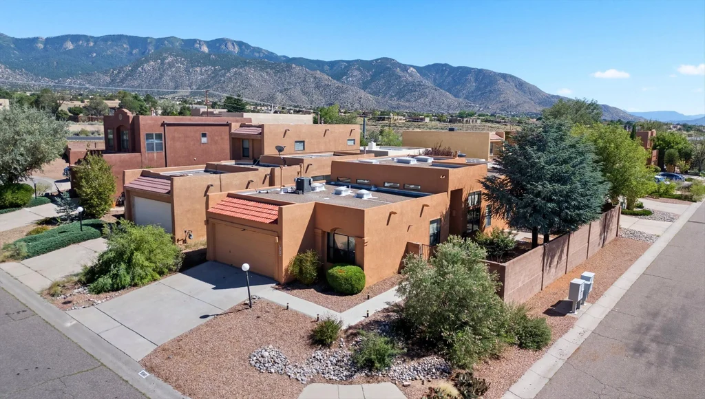 Nestled in Peaceful Sandia Heights, this ready-to-move-in, single-level home, is suited to lock & leave, or settle-in & stay put, w/ community security, and easy access to the Sandia Tram & Trails. Perfect for right-sizing or your family starter home in desirable La Cueva school district. Features include: Transom & clerestory windows, & multiple skylights, which bathe the main living area in natural light. An open-concept kitchen making it easy to cook, gather, & entertain all at once. A private primary suite retreat, w/ spa bath for deep relaxation. Two additional bedrooms for versatility: space for guests, a home office, or a personal gym...? Outside, the low-maintenance, corner lot features room to party or simply unwind and enjoy views of New Mexico's spectacular skies! Come see!