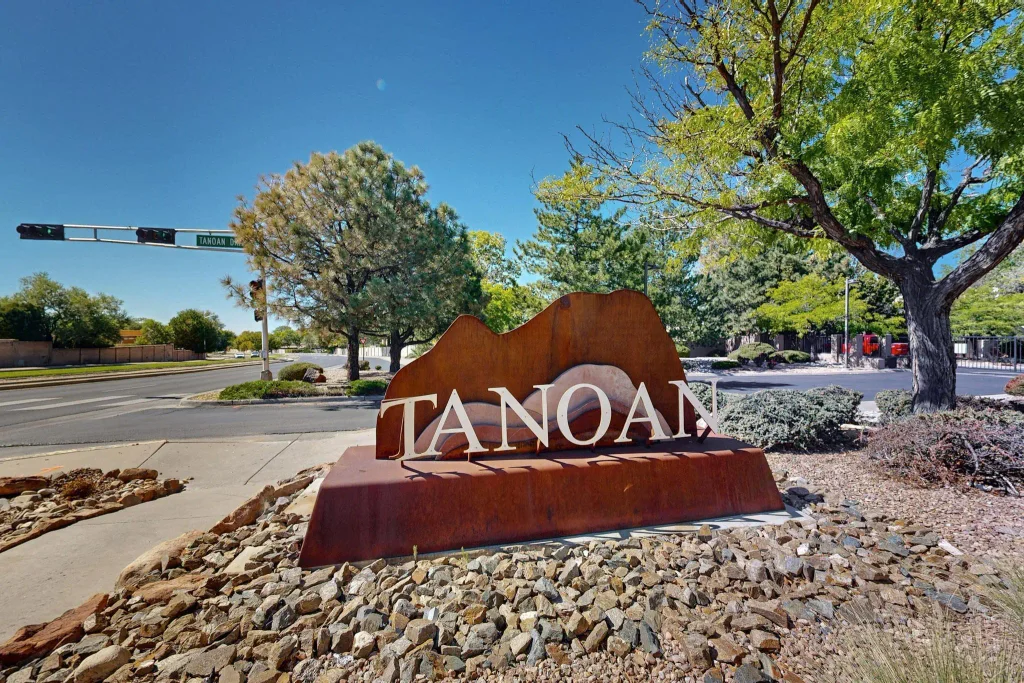 Rare opportunity to buy into the Tanoan Community for well below the average sale price in this very desirable Community! This very well maintained 4 bedroom home has an incredible floorplan with all but one guest bedroom on the main level. Large kitchen, Expansive living-Dining room with high ceilings and clearstory windows, and two eating areas (one casual and one more formal). Finishes are dated, leaving you the opportunity for a cosmetic update to improve your equity, value and style, but keeping your property taxes at a lower tax basis with a lower purchase price! Come and check out this fabulous floorplan home today! Super well maintained with a New Silicone Roof and new concrete driveway, both in 2025.NOTE: Gated Entry, please come with your Realtor!